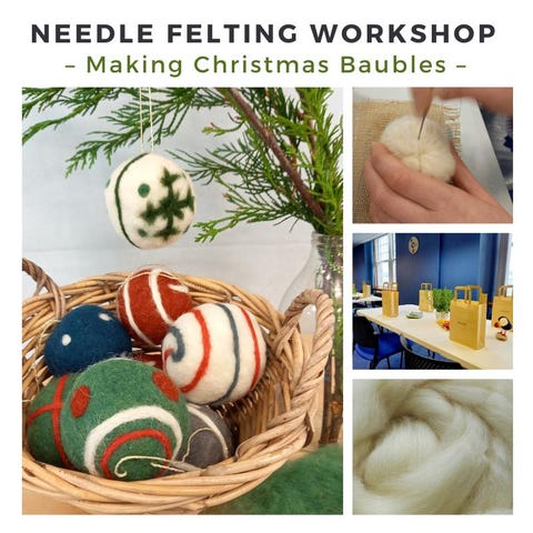 Enjoy an afternoon making needle felted seasonal decorations, perfect for decorating your Christmas tree. See link below for bookings and full details.